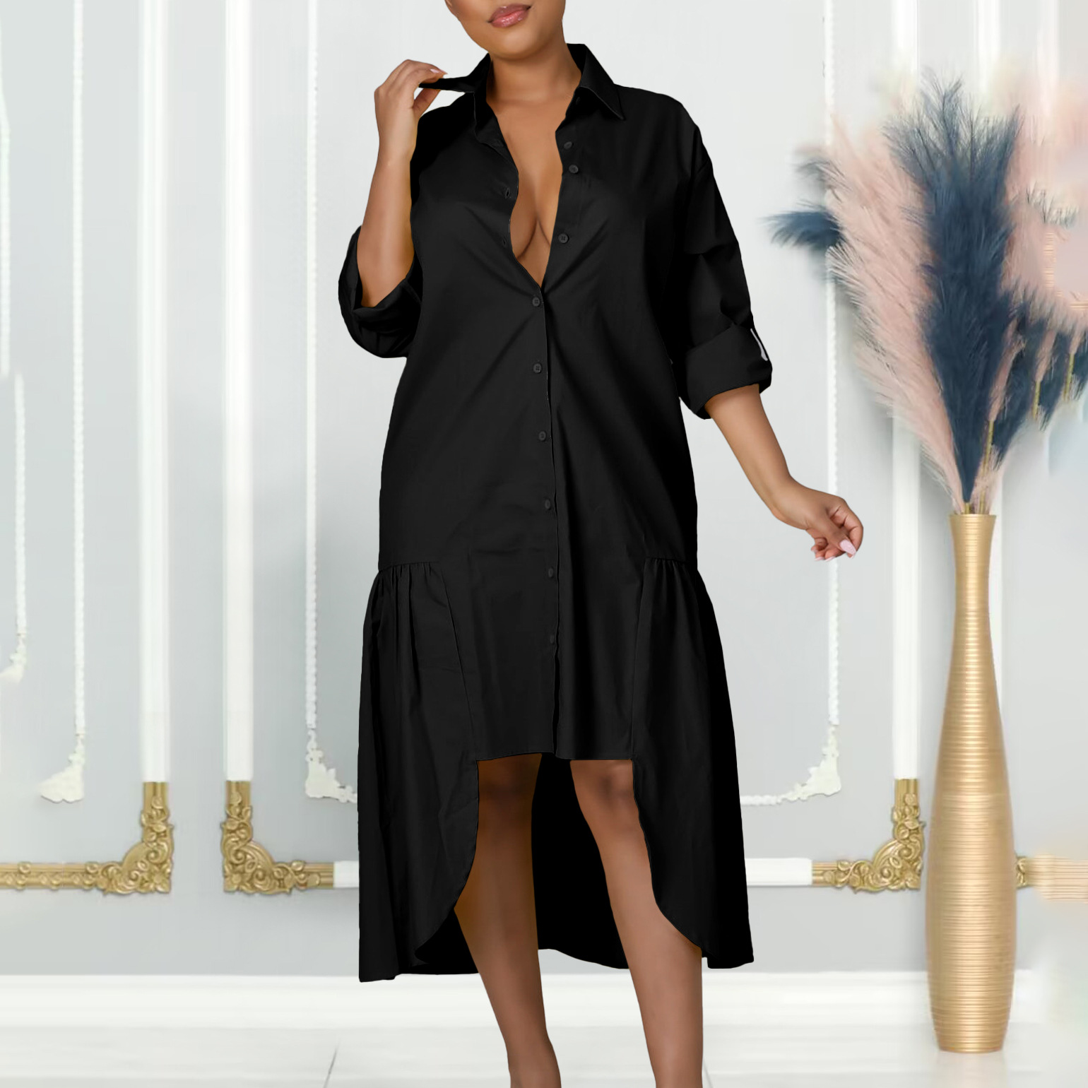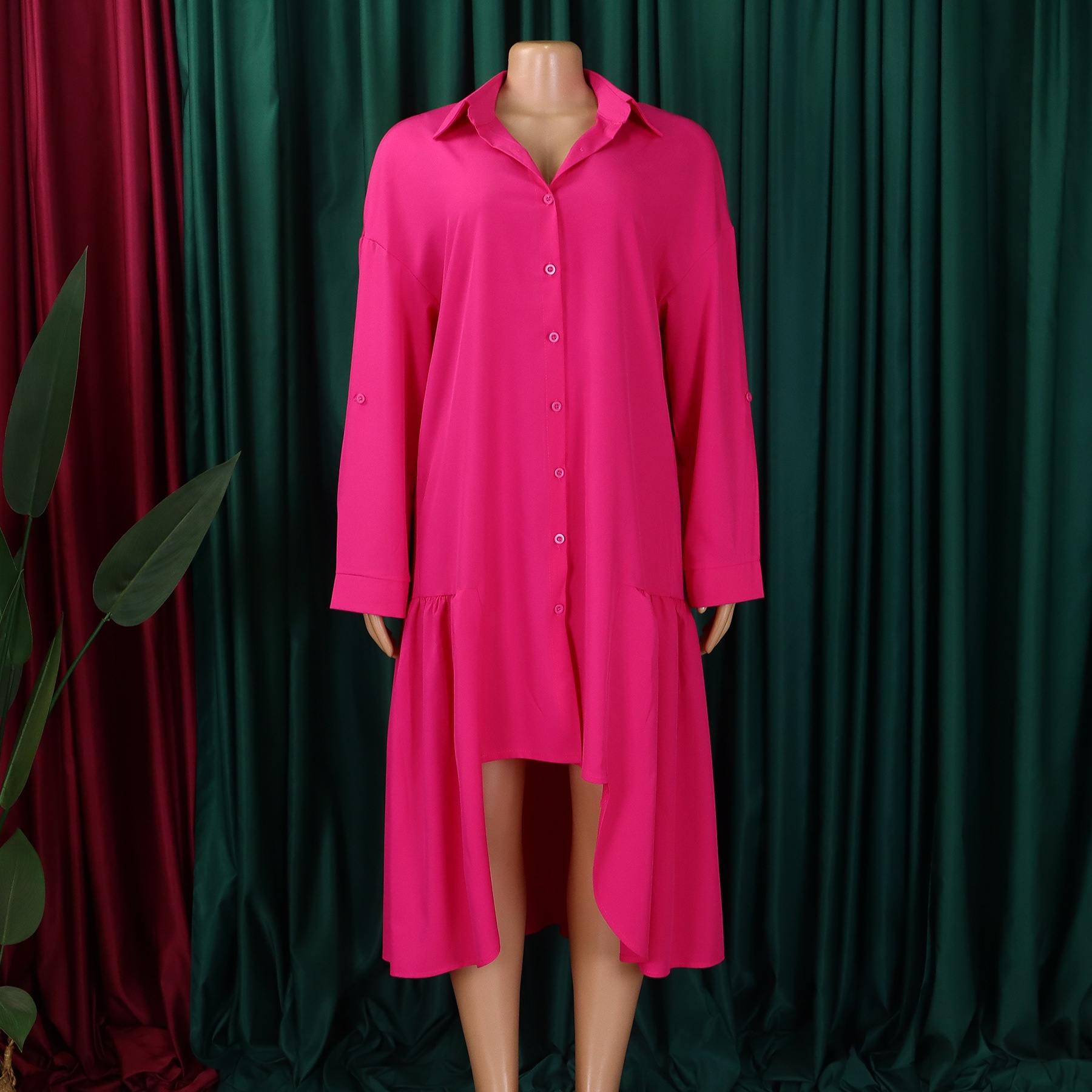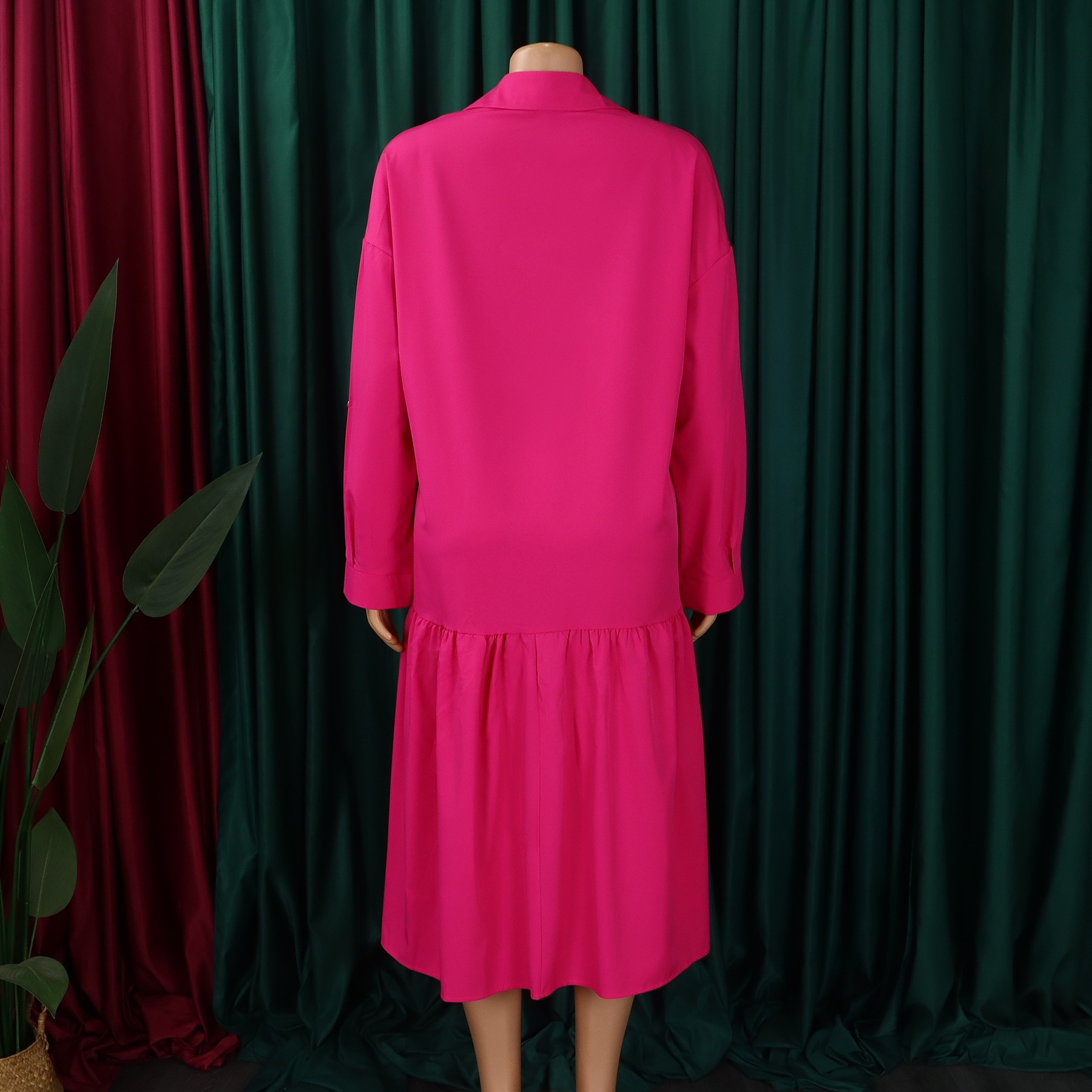 Loose-fitting Long Sleeves Irregular Midi Dress Solid Color