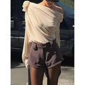 Women's Off-Shoulder Chiffon Blouse – Elegant Asymmetrical Ruched Top
